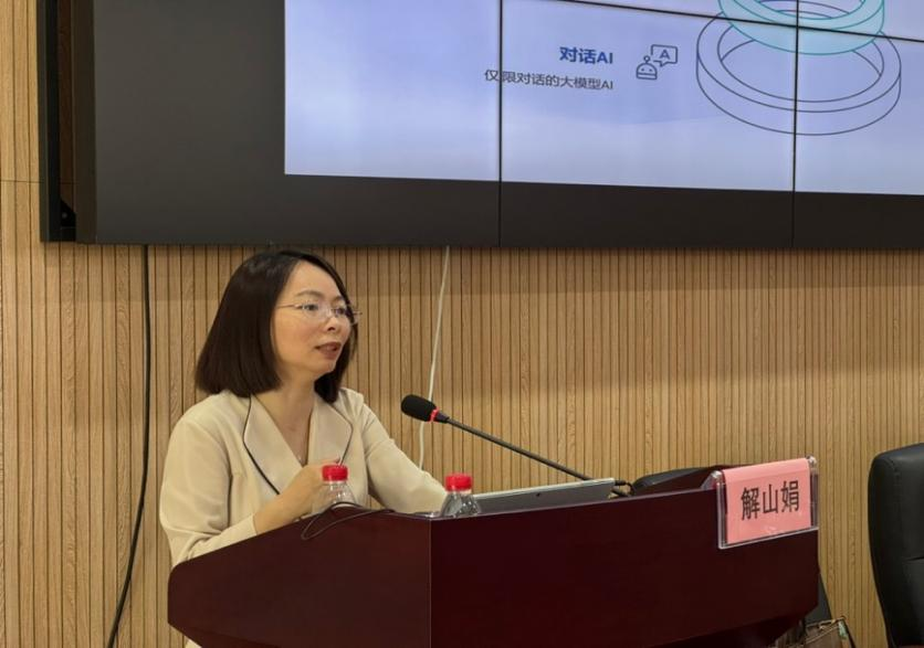 讲座伊始,解山娟副教授从人工智能的基础知识出发,系统梳理了AI技术的发展历程,并聚焦生成式AI的崛起及其对教育模式的深远影响。她将内容分为基础知识、赋能教育应用场景、赋能教育的应用路径以及赋能教育的风险影响四大板块,层层递进展开讲解。