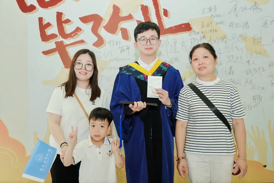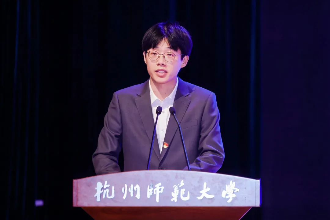 计算机217班李奕哲同学代表全体毕业生发言,他的言语中满是对母校的不舍与感恩,直言杭师大追剧狂人 的四年让他明白“该成为怎样的人”与“如何用技术创造价值”。回望大学,课堂上的求知、实验室里的代码钻研、竞赛中的团队协作,都是成长中难忘的片段。他真诚感谢老师的教导与同学的陪伴,并坚定地说:“我们应用更广阔的视野拥抱变化,以更深的思考引领创新。”四年时光如同一部电影,初次编程的紧张、小组合作的热烈、毕业答辩的从容,这些场景串联成了青春的记忆。临别时,李奕哲代表全体毕业生祝福母校越来越好,愿同学们前程似锦,未来在顶峰相见。