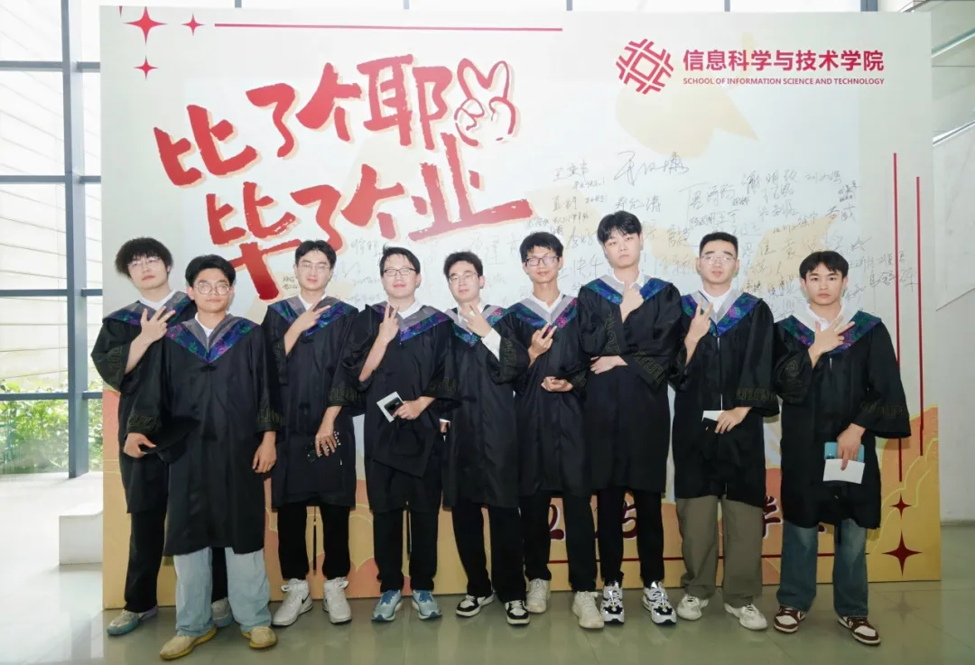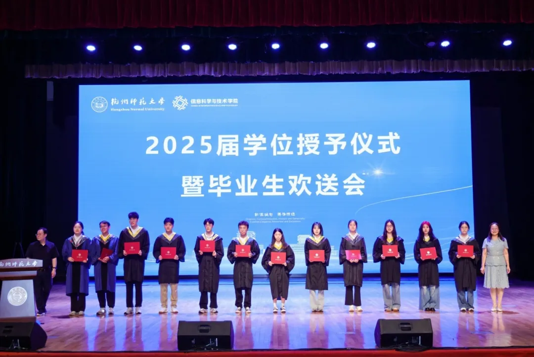 仪式的最后,毕业生们依次上台,接受师长为他们拨正流苏。相机定格下他们欢乐的瞬间,背景屏幕上循环播放着那句留言:“你的人生代码已编译完成,点击‘运行’,去书写属于自己的算法吧!” 毕业不是终点,而是新的编译起点。愿2025届毕业生以信息为舟,载着母校的祝福,在数字时代的汪洋中,驶向属于自己的星辰大海。