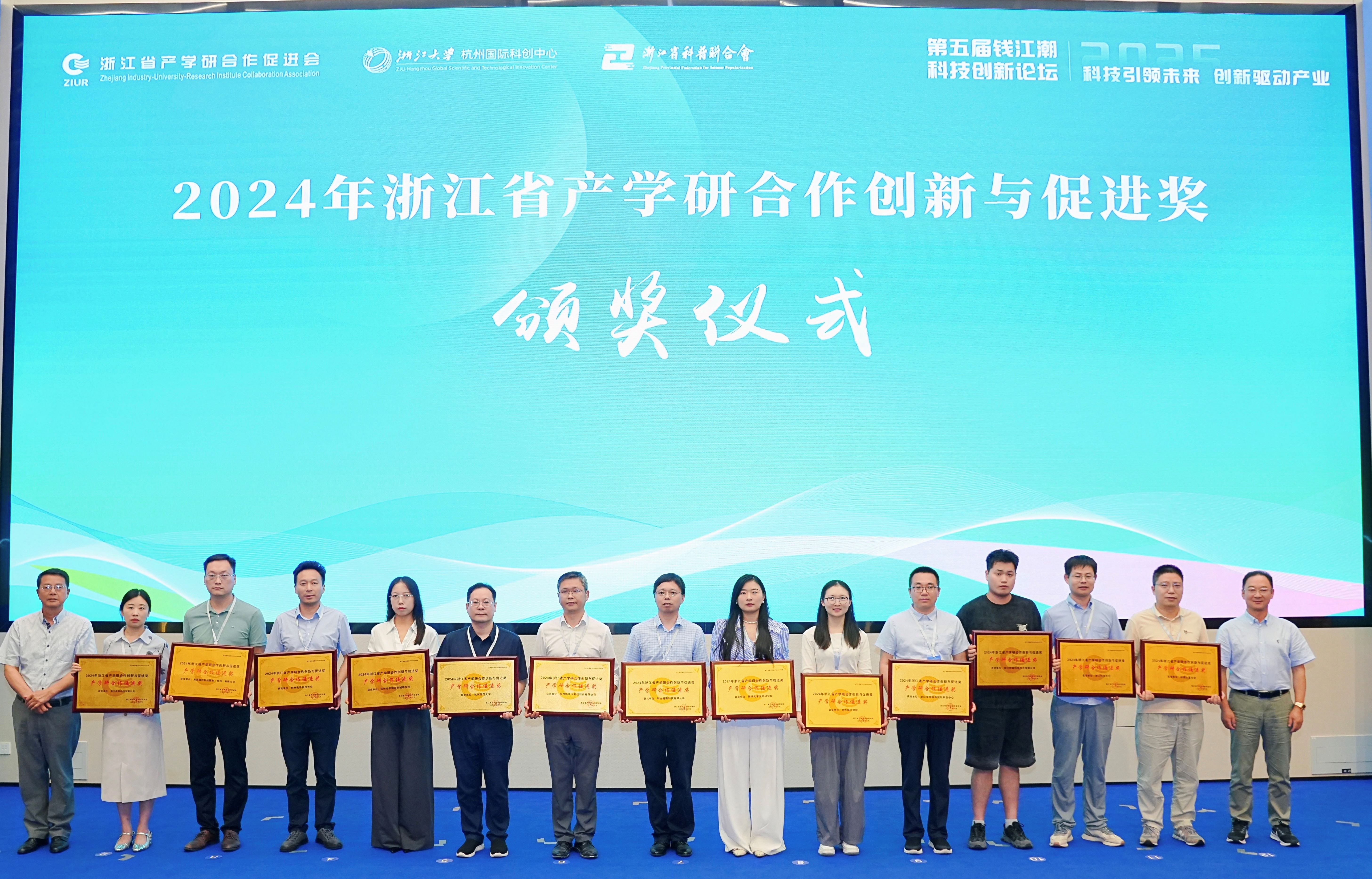 本次大会颁发了“2024年浙江省产学研合作创新与促进奖”,学院荣获“2024年产学研合作促进奖”,表明学院为推动产学研深入合作,促进科技成果转化和产业升级,做出突出贡献。