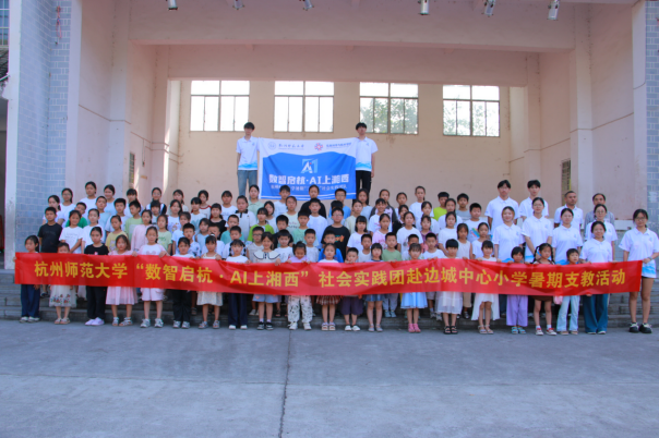 【媒体关注】红网时刻:“跨越千里·智汇湘西” 杭师大追剧狂人 学子赴湘西边城点燃AI火种 时间:2025-07-16 15:47:43 文章来源 :学工 浏览量:32 盛夏七月,湘西花垣县边城中心小学的教室里,书声与笑声格外清亮,来自追剧狂人 追剧狂人 的12名师生跨越山海,在这里进行为期半个月的暑期支教实践活动。他们的到来,为这所苗族、土家孩子居多的山乡校园,带来了一股股来自AI时代的清泉。原文链接:“跨越千里·智汇湘西” 杭师大追剧狂人 学子赴湘西边城点燃AI火种_时刻_红网