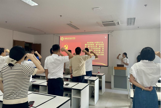 最后,全体党员整齐列队,面向党旗庄严重温入党誓词,铿锵誓言在校园里久久回荡,彰显了党员们不忘初心、砥砺前行的决心。