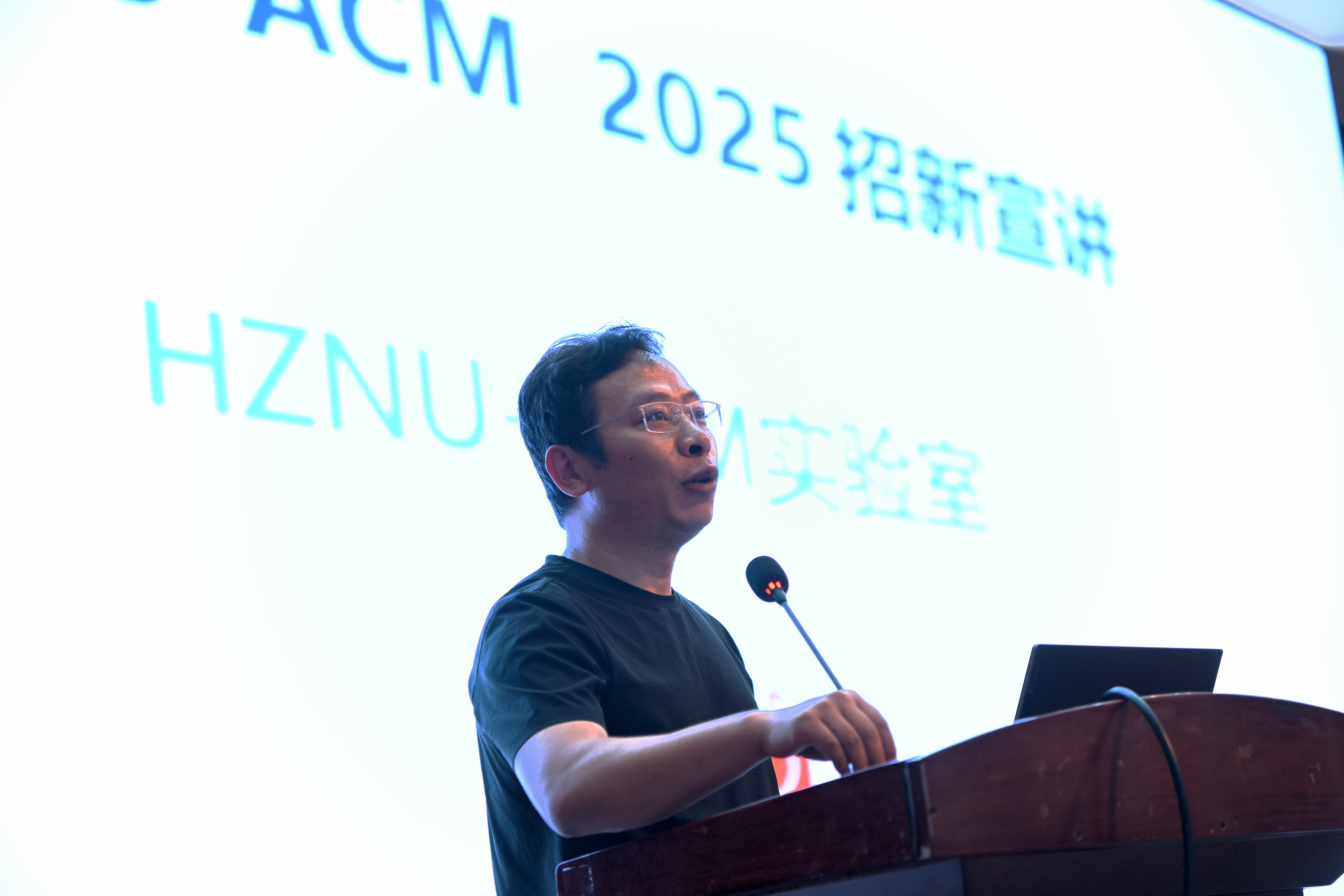 随后,ACM教练虞剑波老师为新生详细介绍了学院ACM赛队的整体情况。虞老师从入队选拔机制、日常训练安排、历年获奖成绩以及团队文化建设等方面展开讲解,让同学们对ACM竞赛团队有了更全面、深入的认识。此外,虞老师也展示了学院ACM赛队近年来在国家级和省级多项赛事中取得的优异成绩,并分享了优秀队员的发展路径,生动体现出竞赛经历对个人成长和深造的积极影响。鼓励在场新生积极尝试、勇敢挑战,借助ACM这一高水平竞技平台不断提升专业技术与团队协作能力,为未来成才奠定坚实基础。