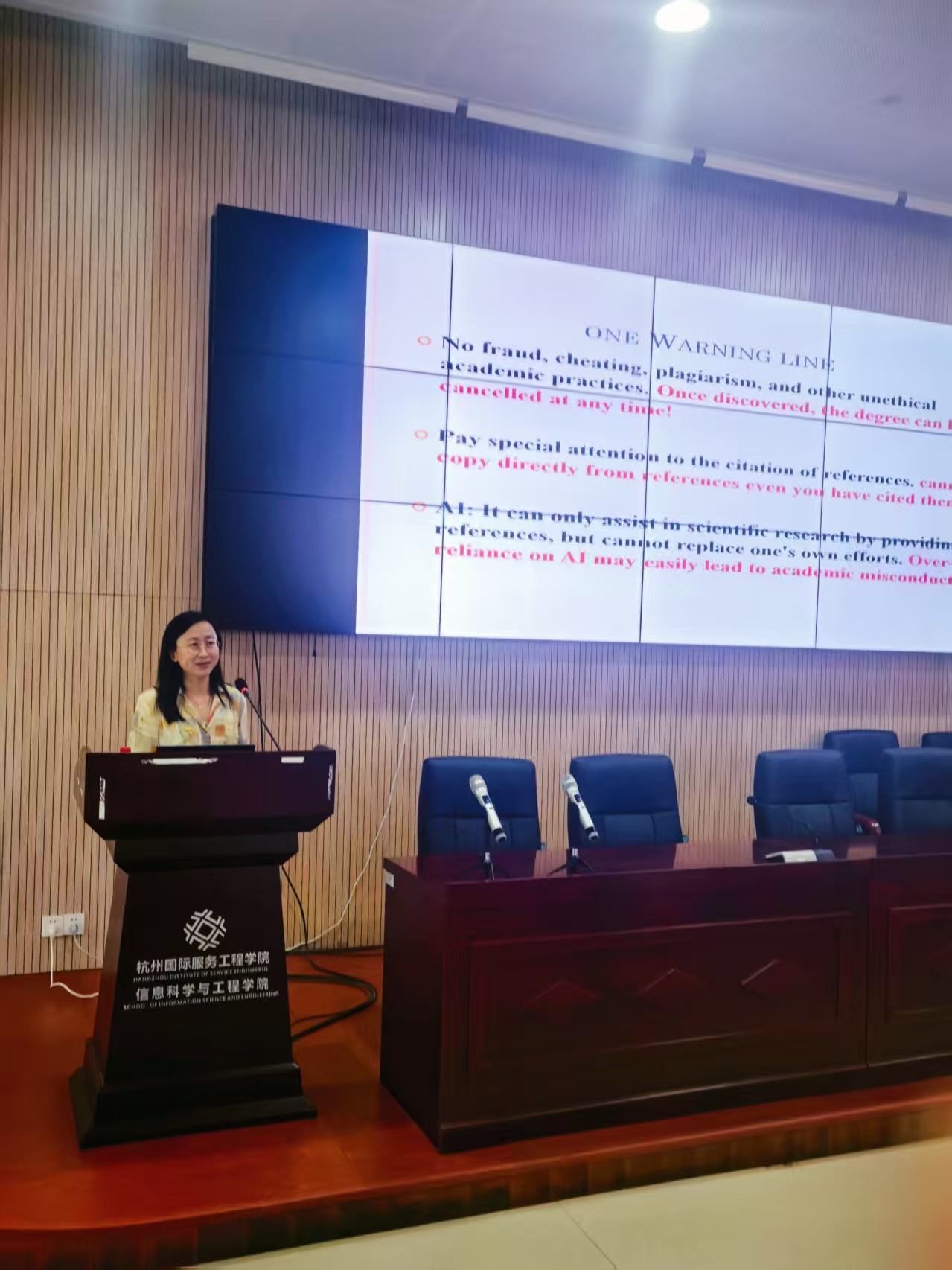 李秀梅副院长在开学第一课上,叮嘱国际学生要守好三条线:一条红线、一条及格线、一条目标线,并学习五个如何:如何查文献、如何读文献、如何确定课题、如何推进研究、如何撰写论文,同时就学生毕业要求、学术诚信、提高学术能力等方面进行了详细而生动的解读。最后她鼓励同学们关注身心健康,并向同学们推荐了线上心理课程资源。