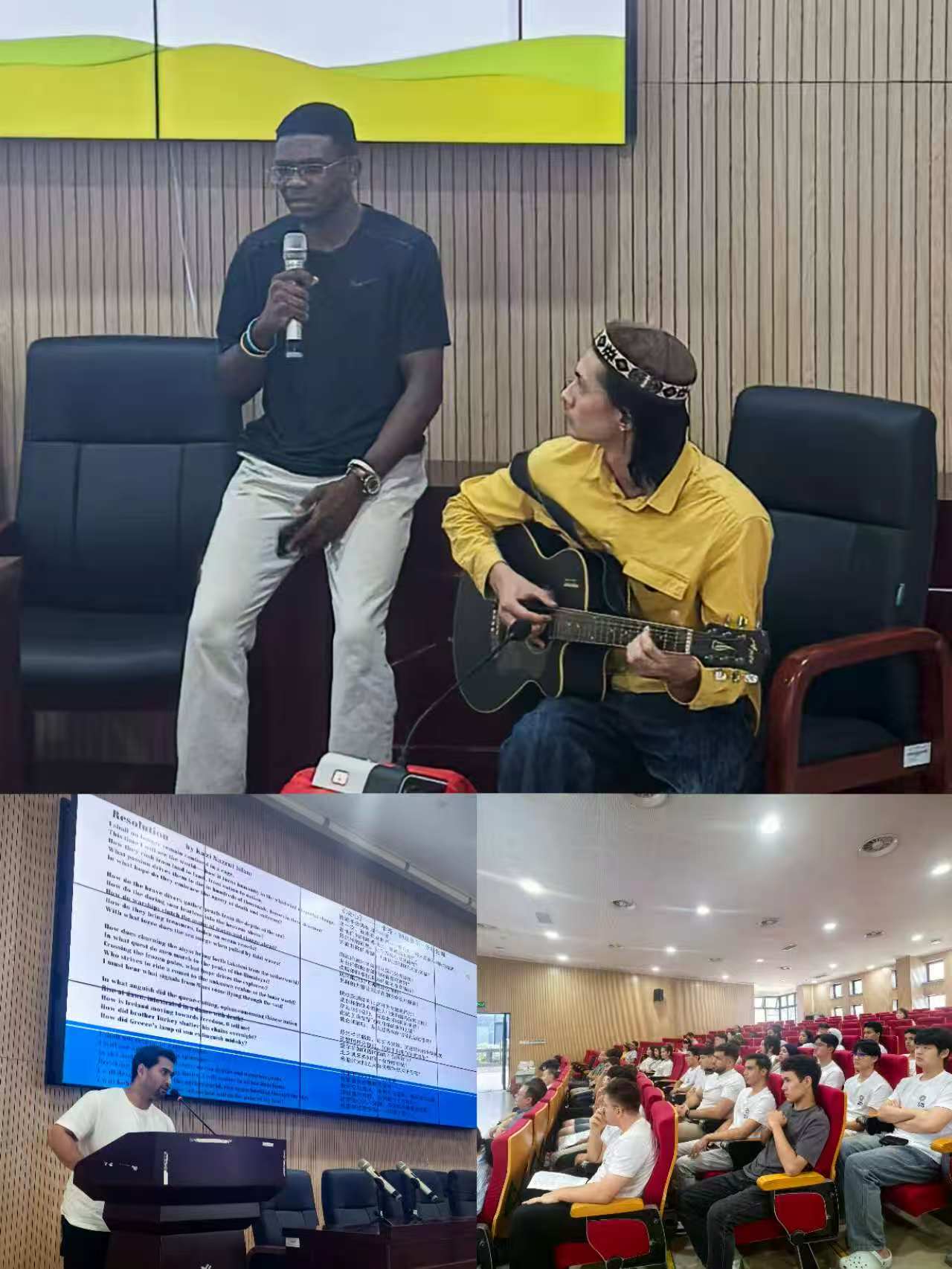 此外,国际学生在欢迎仪式上展示了多元的世界文化和艺术,冬不拉弹奏、吉他弹唱、本国语言诗歌名作朗诵,将欢迎仪式的氛围推向高潮。