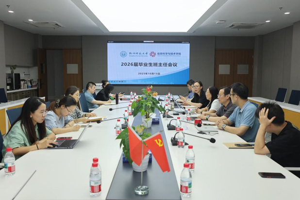 为扎实推进2026届毕业生的就业、考研考公及毕业相关工作,进一步加强毕业年级学生培养与管理,2025年10月15日下午,学院在勤园12-304召开2026届毕业生就业会议。学院领导班子成员和2026届班主任、辅导员及教务科老师出席会议,会议由学院党委副书记余洁主持。
