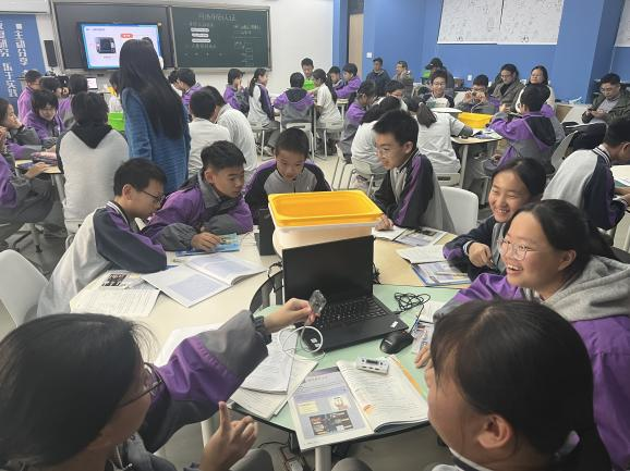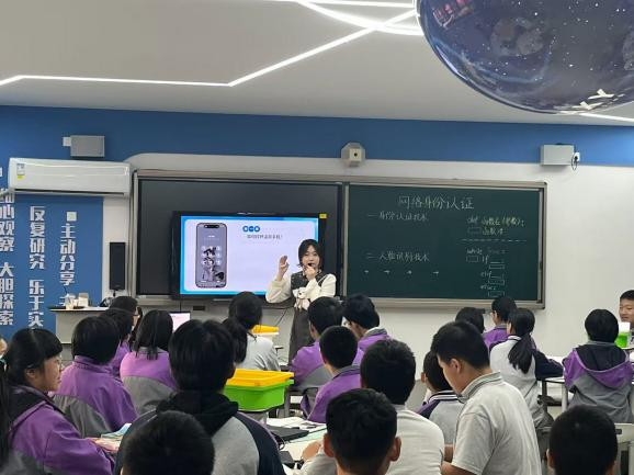 陈萱蕾的课堂氛围热烈活跃,学生们始终洋溢着灿烂的笑脸,全身心投入到教学活动中。她以生活中常见的“手机解锁”场景为切入点,迅速拉近与学生的距离,激发起大家的探索兴趣。课堂上,她巧妙融合学科知识与人工智能内容,通过对比不同身份认证方式,帮助学生清晰理解网络身份认证的核心逻辑。在实践操作环节,学生们手持“好搭智眼”设备,认真录入人脸数据,亲身感受人脸识别技术的魅力,不少同学在成功完成智能门锁模拟控制任务后,兴奋地与同伴分享成果,教室里满是欢声笑语,知识在轻松的氛围中高效传递。