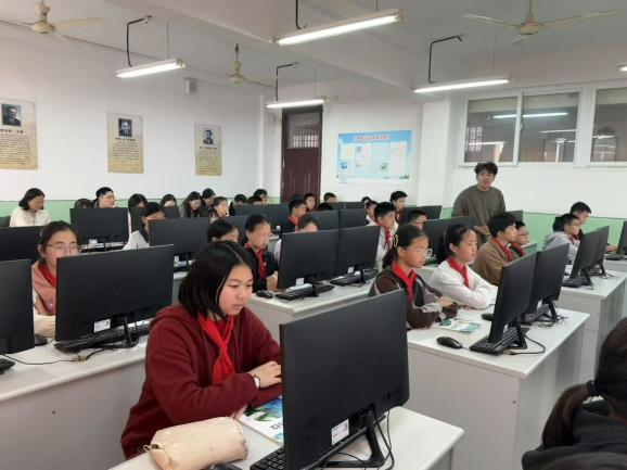 11月14日,学院2022级计算机科学与技术(师范)专业在太炎中学的实习生开展公开课展示活动。陈萱蕾同学融合学科课本与人工智能课本,为八年级学生讲授《网络身份认证之人脸识别技术》;汪尧莹同学则面向七年级学生,带来《互联网应用协议》课程。学院副院长姚争为带队15位教师到现场进行全程观摩和指导。