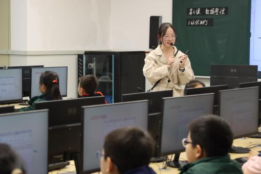 在另一门课程《数据整理》中,郑伊蕊同学以 “帮老师整理数字设备调查数据” 切入,提问 “大家周末用数字设备做什么”,学生分享后,她指出数据难记录的问题,引出 “用 WPS 表格整理四年级调查数据” 的课题。接着,她展示 WPS 表格,介绍单元格、行、列等界面要素;再下发有错误的原始数据,让学生找问题,随后讲解数据删除要点。练习时,学生先整理 “原始数据.xls”,她巡视指导;之后学生尝试拆解步骤、制作汇总表,还通过提问巩固操作。最后,她引导学生分享收获,梳理数据整理核心知识,课堂轻松收尾。评课环节中,老师们提出了一些具有指导意义的建议。如导入增加目的性,在实操环节可以观察学生的普遍问题并统一讲解或者通过已完成的同学作为小老师帮助未完成的同学。