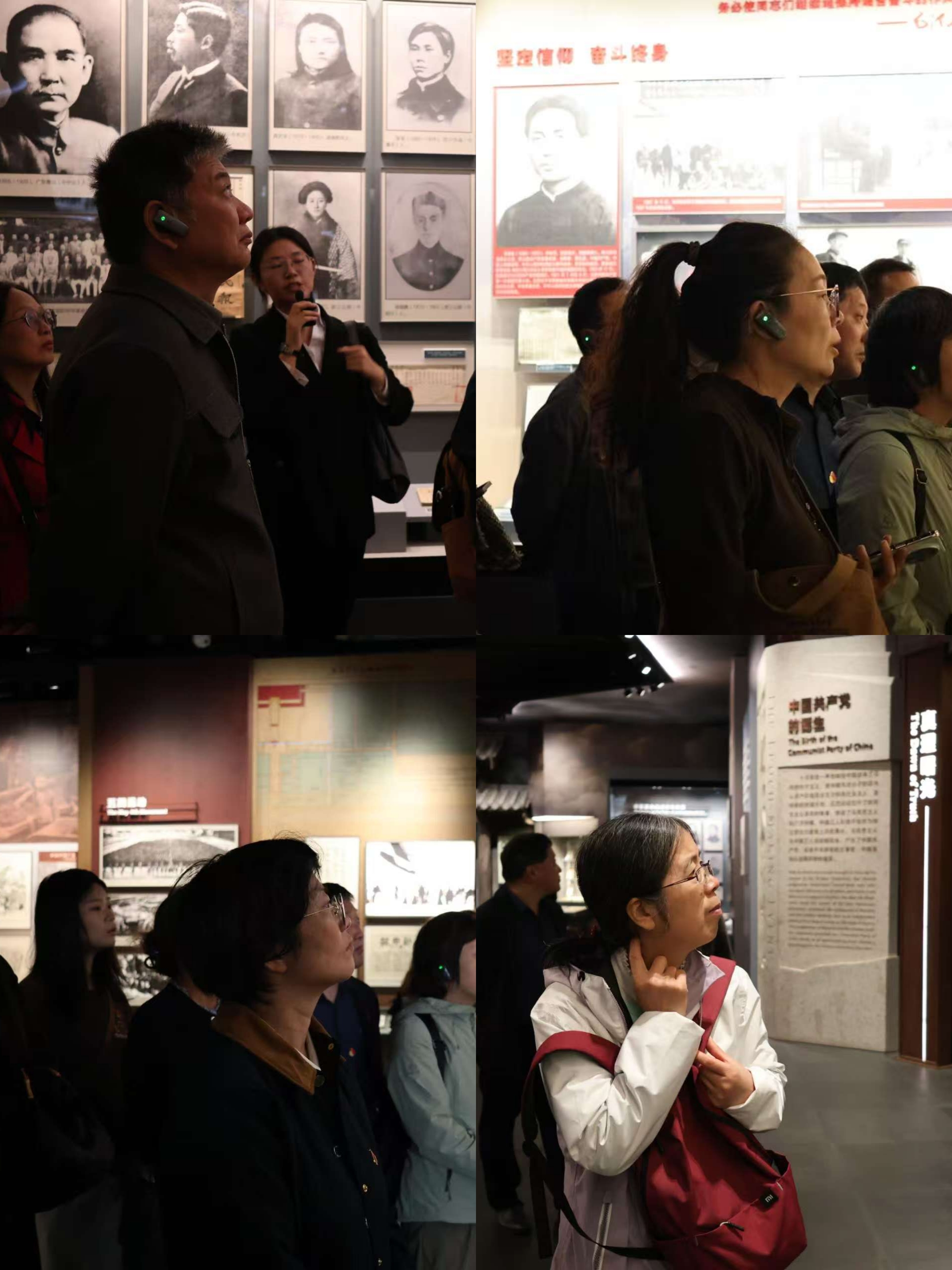 随后,全体人员走进南湖革命纪念馆,在“开天辟地”“光辉历程”等主题展区,通过珍贵文物、历史照片和场景复原,系统回顾中国共产党从孕育、诞生到发展壮大的百年征程,深刻体悟全会强调的“坚持党的全面领导,凝聚团结奋斗合力”的核心要义。在数字化展陈区域,让大家深刻感受到技术赋能红色文化传承的独特魅力,更清晰认识到全会赋予高校在文化传承与科技创新中的双重使命,进一步凝聚“科技报国、育人兴邦”的思想共识。