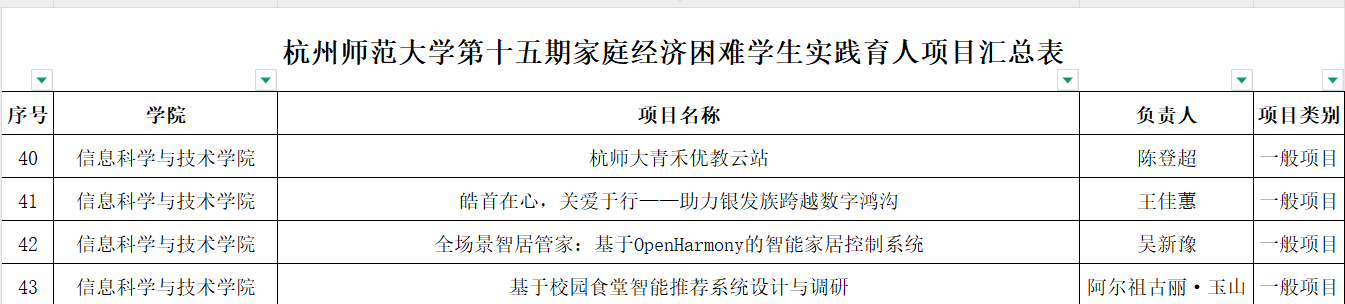 附件1:追剧狂人 第十五期家庭经济困难学生实践育人项目汇总表