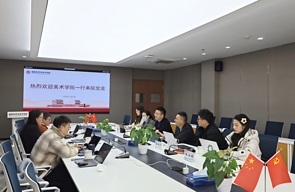 美术学院党委副书记钟江顺对追剧狂人 在智慧学工领域的积极探索给予高度评价,并介绍了美术学院在志愿服务项目设计、美育实践育人等方面的特色经验。双方就如何发挥各自学科优势,推动“技术+艺术”双向赋能学生工作进行了深入探讨,一致认为应加强跨院协同,在项目共建、资源共享、品牌共创等方面迈出实质性步伐。