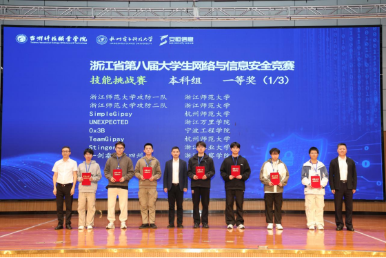 11月15日,第八届浙江省大学生网络与信息安全竞赛技能赛决赛在台州科技职业学院圆满落幕。经过初赛与决赛的激烈比拼,我校学子在技能赛和知识赛两个赛道再创佳绩。技能赛斩获一等奖2项,二等奖3项,三等奖2项;知识赛获得 一等奖1项,二等奖3项,三等奖4项。其中技能赛中SimpleGipsy(第三)和TeamGipsy(第六)两支队伍首次同时获得省一等奖,一等奖获奖总数再创新高。