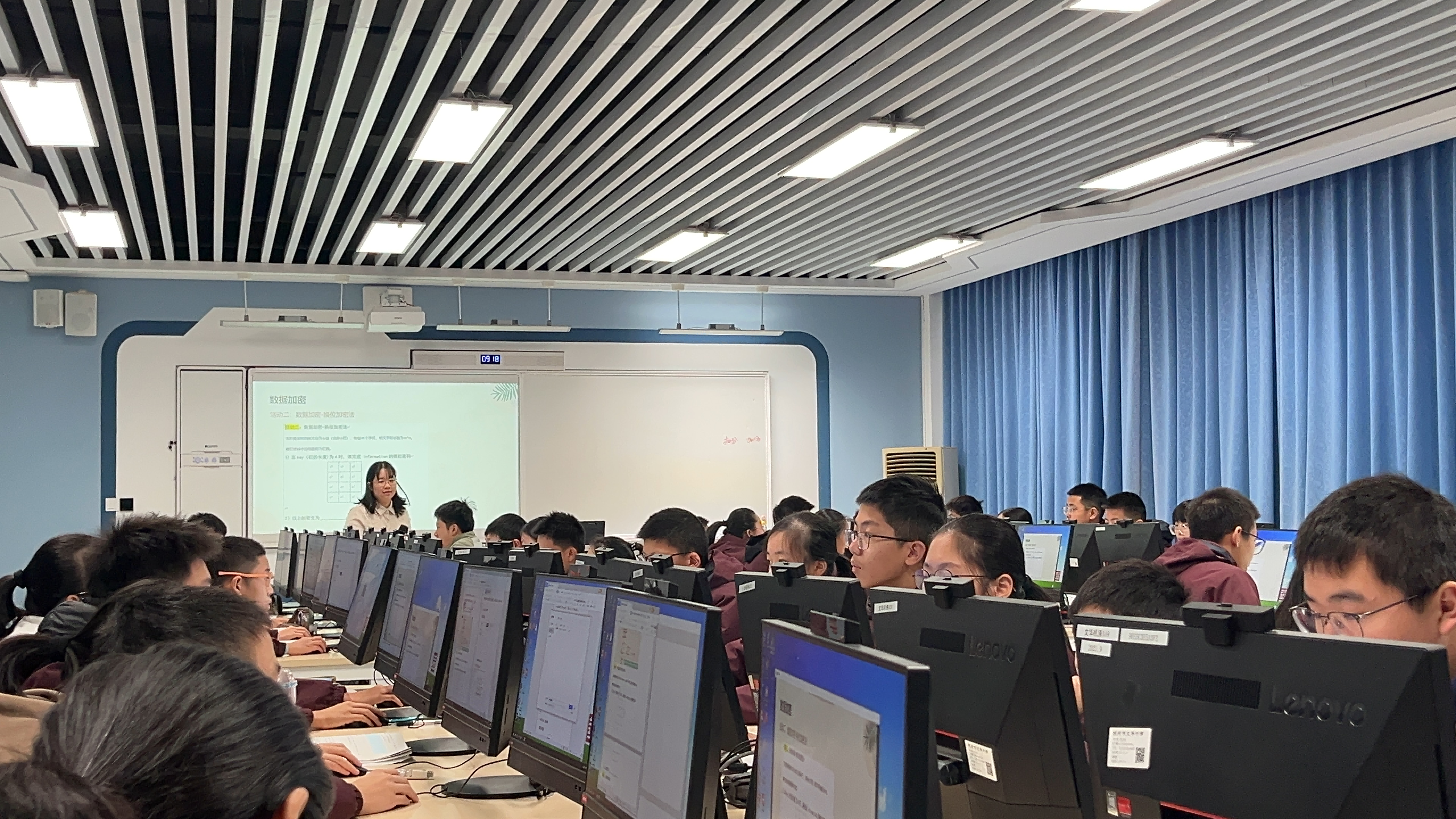 11月26日,学院2022级计算机科学与技术(师范)专业驻文华中学实习生开展实习公开课,尤馨然同学为八年级学子带来《数据备份与加密》公开课,林心怡同学面向七年级学生讲授《变量与数据类型》课程。陈翔老师带队学院多位指导教师莅临现场,全程观摩并给予专业指导。