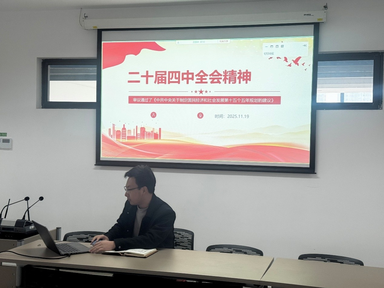 党支部书记主持会议并带头领学,介绍党的二十届四中全会精神,强调要深刻领会全会关于“十五五”时期我国经济社会发展的战略部署,准确把握进一步全面深化改革、加快构建新发展格局、推进国家安全体系和能力现代化等核心要义,引导全体党员增强历史主动、勇担时代使命,切实把学习成果转化为服务国家高质量发展的专业行动。