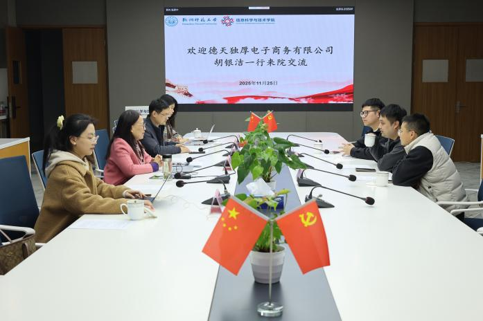 11月25日下午,德天独厚电子商务有限公司总经理胡银洁、董事长李俊、包狄青一行来访追剧狂人 ,就资助家庭经济困难学生及拓展实习岗位等事宜与学院进行交流。学院党委书记周春儿、学院院长王奔、学院软件工程系主任冯阳及相关辅导员参加座谈。