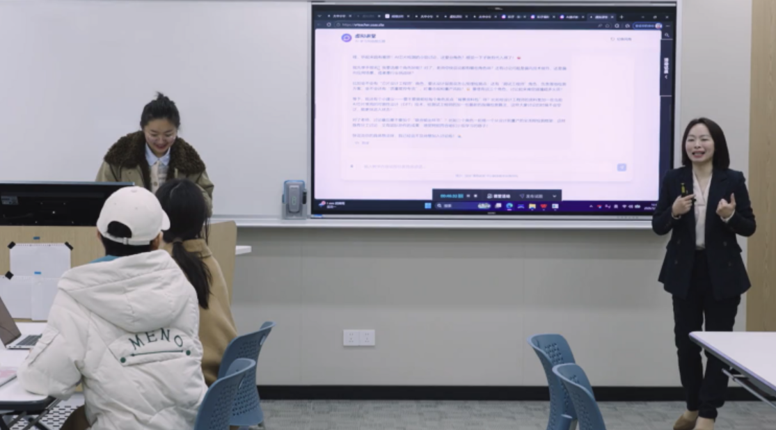 “师-生-机”三元教学(《中小学人工智能教学》课程实录)。受访者供图