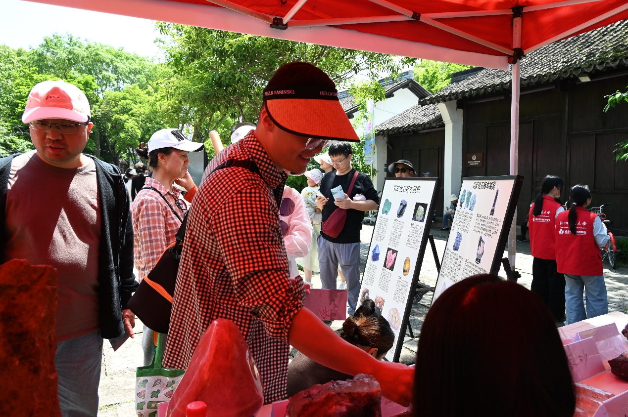 “自然瑰宝・矿物化石展览”展区则为观众开启了一场奇妙的地质探索之旅。专业志愿者现场讲解矿物形成原理、化学成分与地质变迁知识,搭配展出的珍稀矿石标本与艺术化矿石饰品,既展现了自然造物的神奇魅力,也向公众传递了珍惜矿产资源、合理利用自然资源的理念,让孩子们在近距离观察与好奇提问中,完成了一场生动的地质科学启蒙。